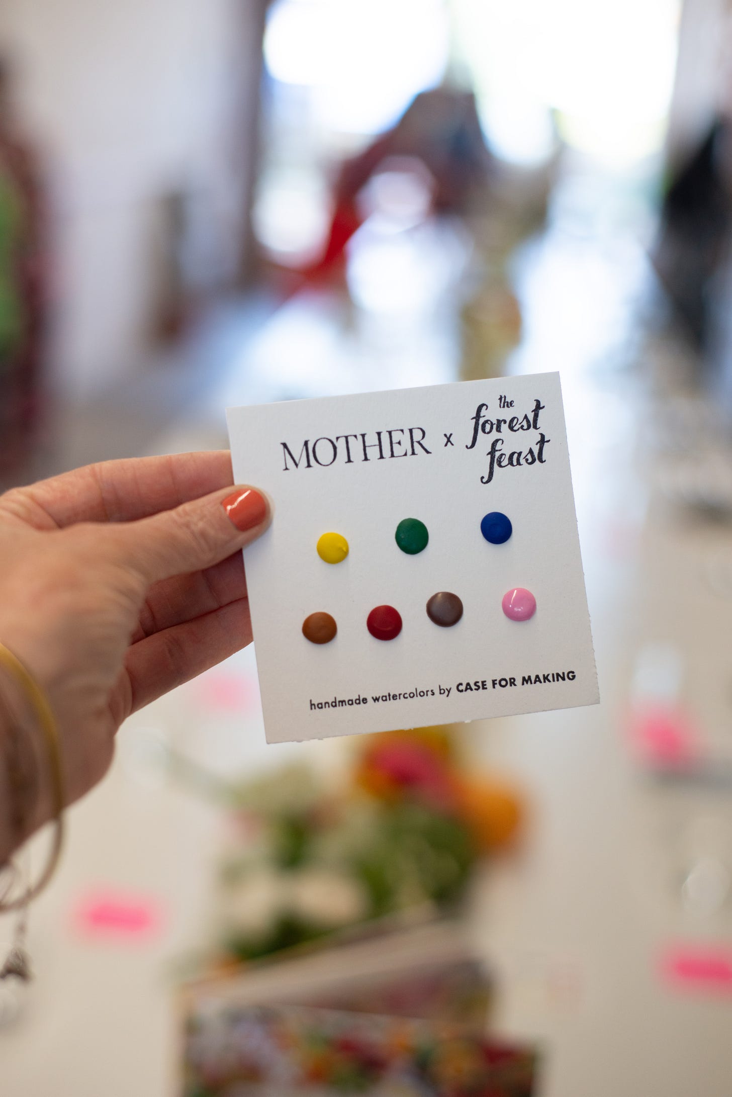 A few months ago in San Francisco, I got to paint in community with several other mamas one morning at the inspiring art space, Case for Making. They make and sell the best watercolor supplies. The gathering was hosted by Mother Mag, which was an important creative community for me when I was starting out with The Forest Feast. Mother is an online magazine but they also host a lot of intentional, creative events to connect moms. (They even did a pregnancy style feature on me at the cabin before baby #1!)