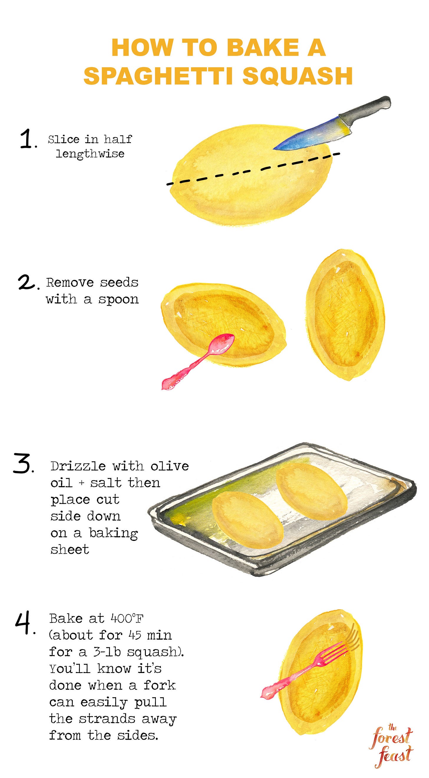 It can be baked ahead, and it’s highly adaptable to a range of flavors. Because it’s so stringy, it’s fun to sub the squash into traditional pasta dishes. I’m especially fond of my Cacio e Pepe Spaghetti Squash from The Forest Feast Mediterranean (makes an excellent veggie side). And last year I made a spring-inspired dish, Spaghetti Squash with Asparagus Gremolata.